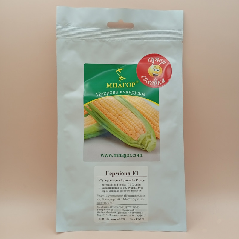 Гермиона F1 – раннеспелый гибрид суперсладкой кукурузы Sh2. Он отличается высоким уровнем сахара (более 20%), нежным вкусом и привлекательным внешним видом, благодаря чему пользуется спросом для свежей реализации на рынках и переработке.