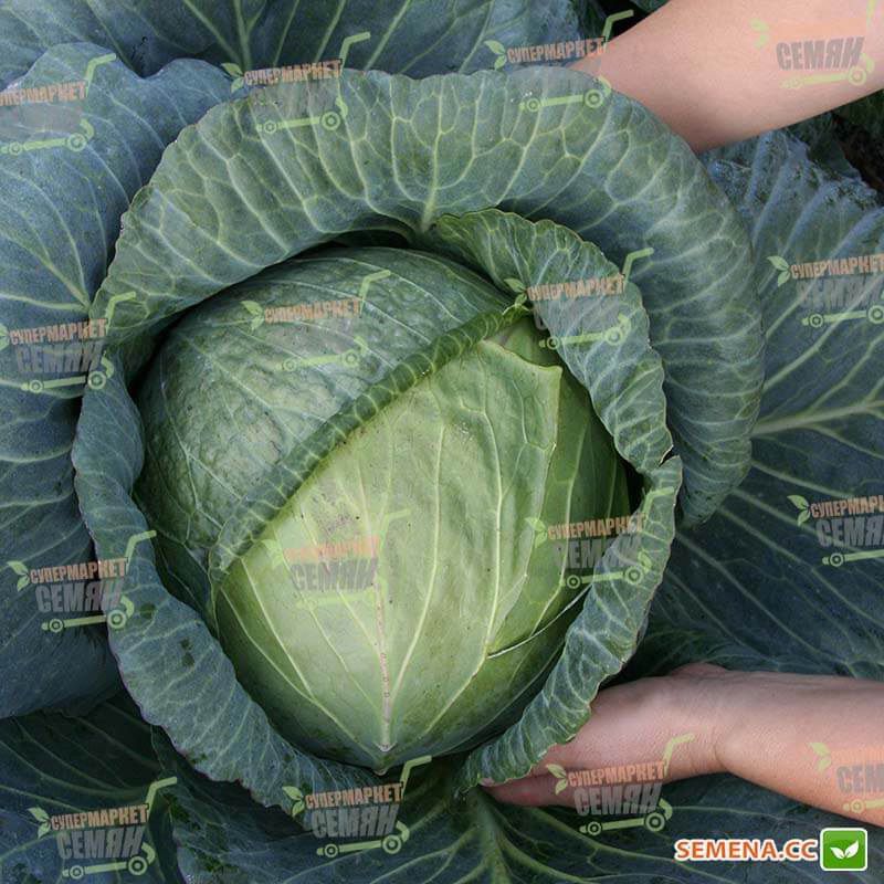 Головка крупная, плоскоокруглая, массой до 6 кг. Кочан короткий. Плотная и сочная внутри. Листья гладкие, белые. Очень вкусная, отличный товарный вид.
