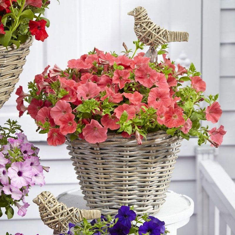 Гибрид ампельной почвокровной петунии.
