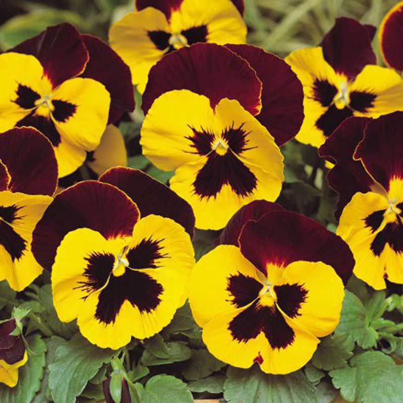Гибридная серия виолы с крупными цветами красно-желтой окраски.