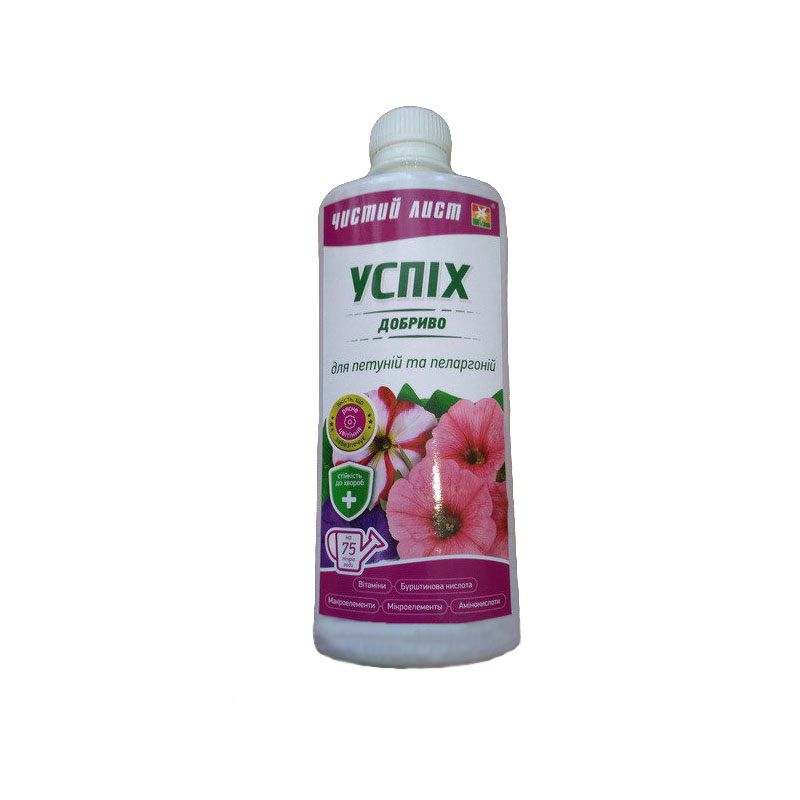Успех для петуний - это узконаправленное удобрение. В составе содержит все необходимые макро- и микроэлементы в хелатной и сбалансированной форме. После внесения препарата угнетается рост патогенов, стимулируется более сильное развитие корневой системы и повышается естественная стойкость растений перед заболеваниями.