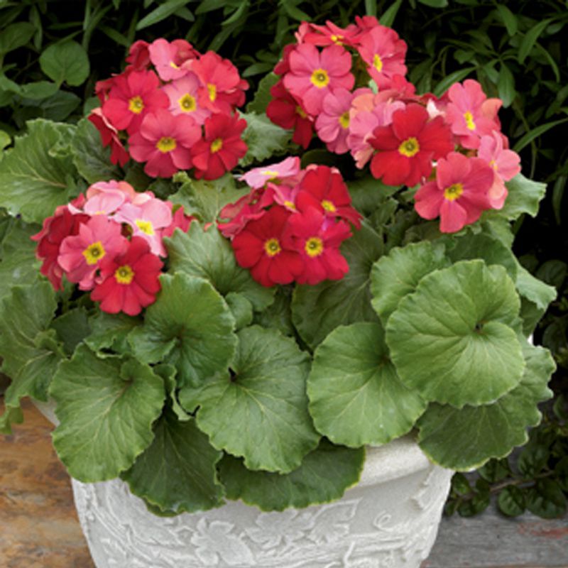 Примула Либре F1 красная (Red) - куст компактный, высотой 20-25 см, шириной 15-20 см.