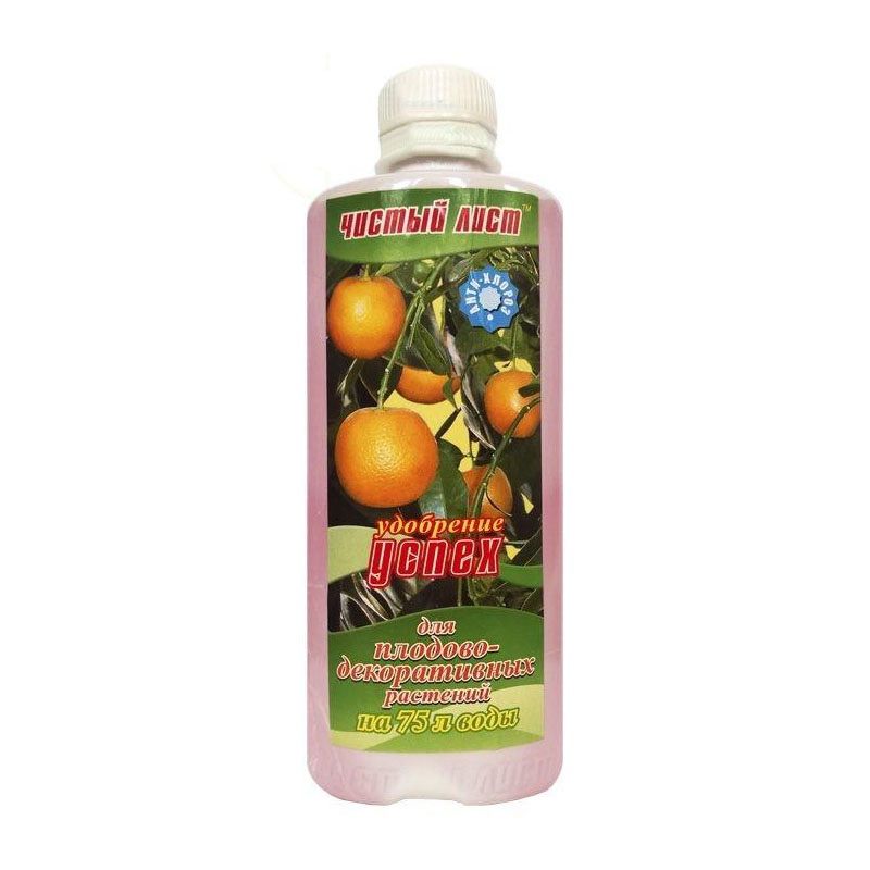 Успех для плодово-декоративных культур - данное удобрение содержит в своем составе все необходимые микро- и макроэлементы в доступной и оптимальной для этих культур форме. Своим воздействием препарат увеличивает содержание сахара и в значительной мере уменьшает горечь в цитрусовых плодах. Также удобрение повышает естественную стойкость растений перед болезнями.