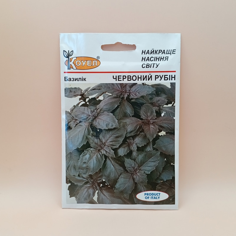 Ред Рубин семена базилика - сорт среднеранний. От полных всходов до технической спелости 34-40 дней. Растения высотой свыше 30 см, компактные. Листья удлиненно-яйцевидные, фиолетово-красного цвета, выпуклые, гладкие или слабо пузырчатые, черешок средней длины.