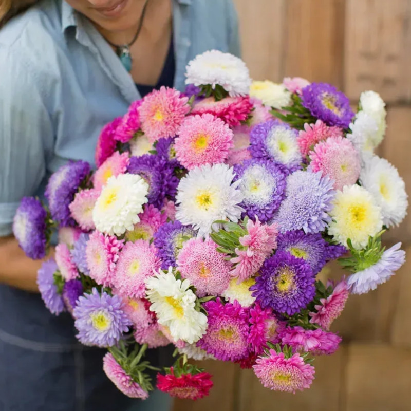 Астра Шанхайская роза (Mix) смесь - сортотип «Принцесса». Эффектная серия с крупными махровыми соцветиями.