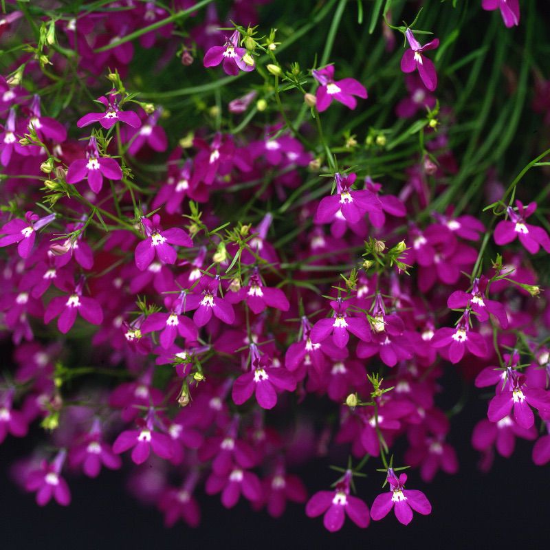 Лобелия – многолетник, выращиваемый как однолетник. Стебли прямостоячие, тонкие, густо покрыты удлиненно-продолговатыми листочками с зубчатым краем. Кусты обычно не выше 20-25 см. Если не обрезать побеги, то куст принимает полуампельную форму, можно выращивать в подвесной корзине. Цветки сростнолепестные, двугубые, около 2 см в диаметре, различной окраски: синие, голубые, фиолетовые, красные, белые и т.д.