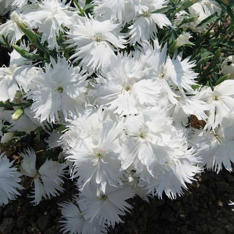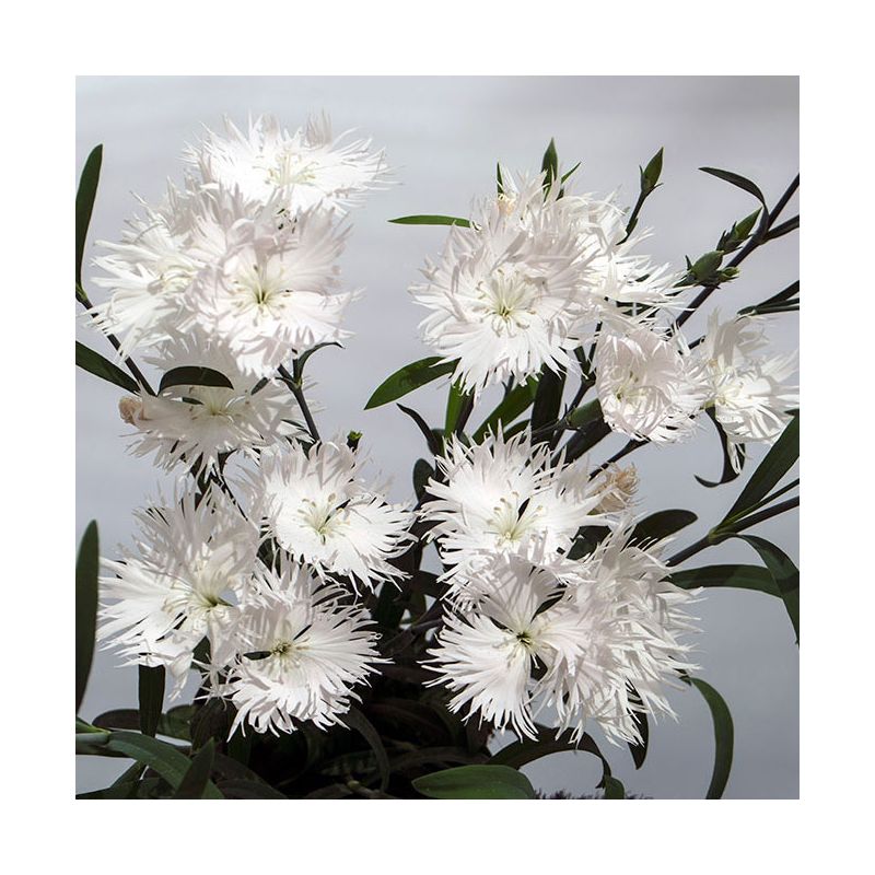Высота в горшке 15-20 см, ширина - 20-25 см. Ажурные цветы белого цвета. Зацветает через три месяца после посева.