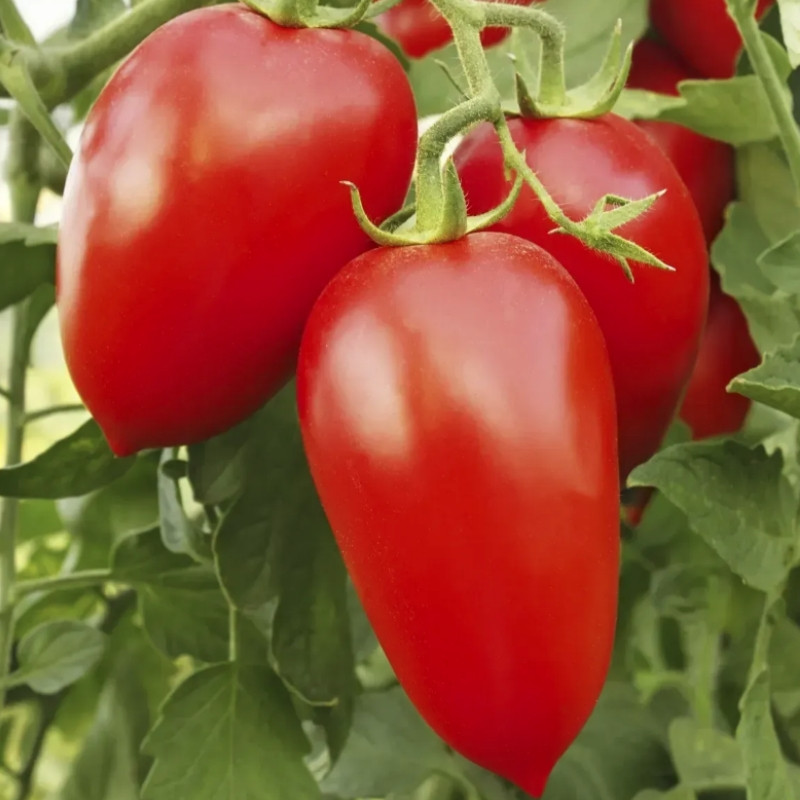 Сливовидные плоды, потрясающие по вкусу, масса достигает 90-100 грамм, красивого красного окраса, плотные.