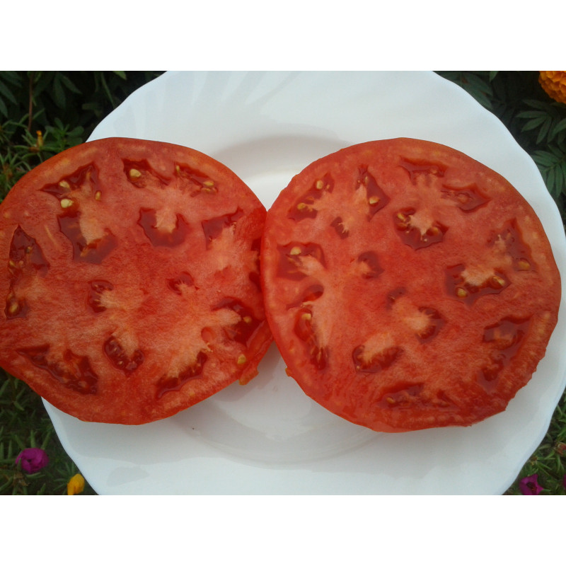 Округлые плоды, потрясающие по вкусу, весом 220-280 грамм, красивого красного окраса, без зеленого пятнышка, многокамерные, плотные.