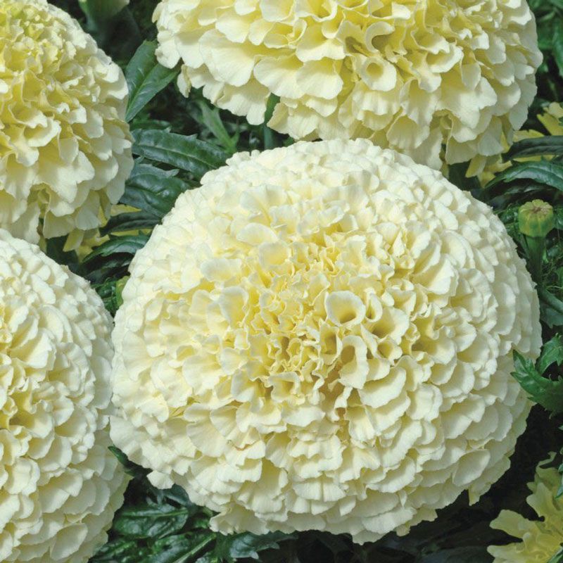 Бархатцы Антигуа F1 ванильные - гибрид карликовых прямостоящих бархатцев.