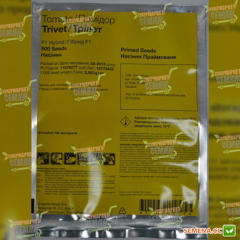 Тривет Ф1 - это суперранний гибрид полудетерминантного типа. Вегетационный период от высадки рассады 63 - 68 дней.