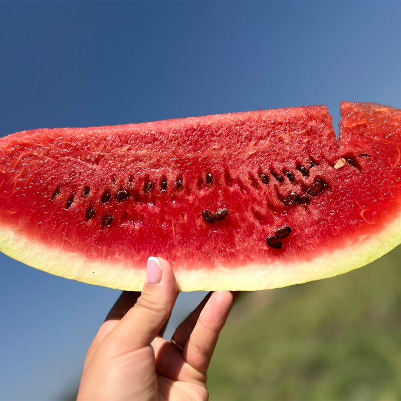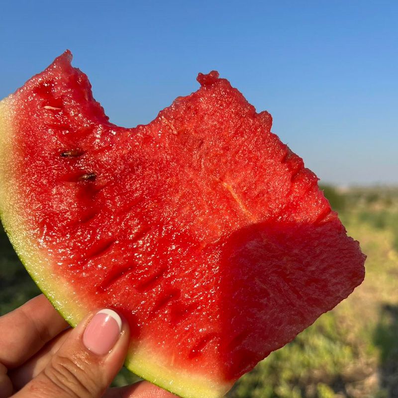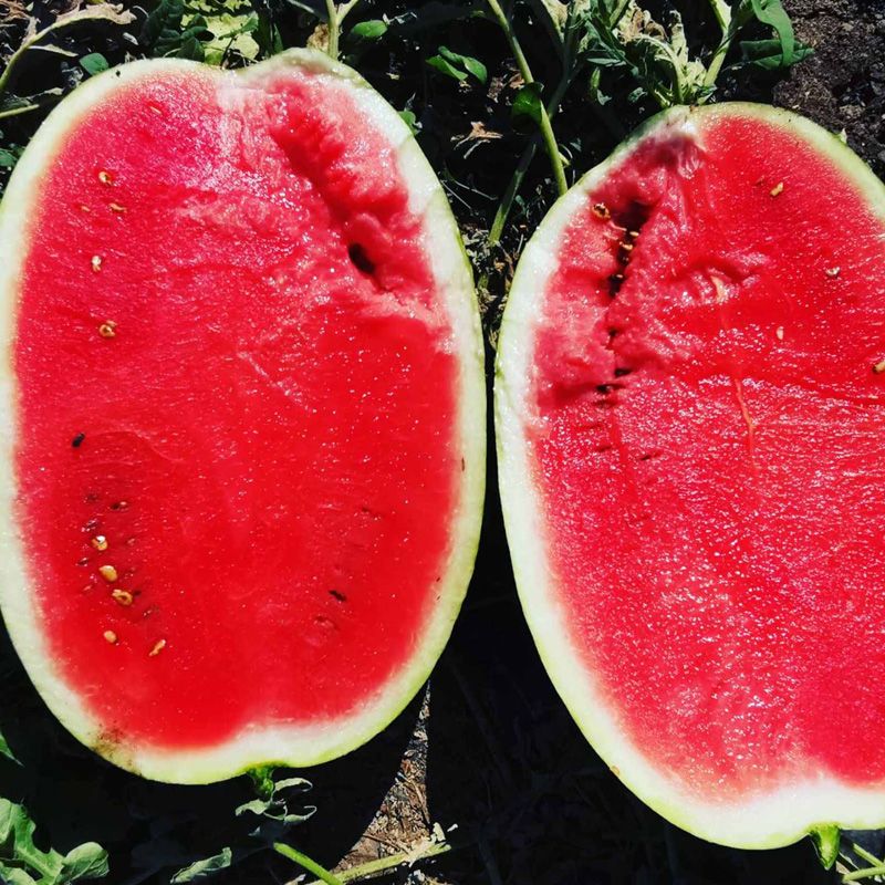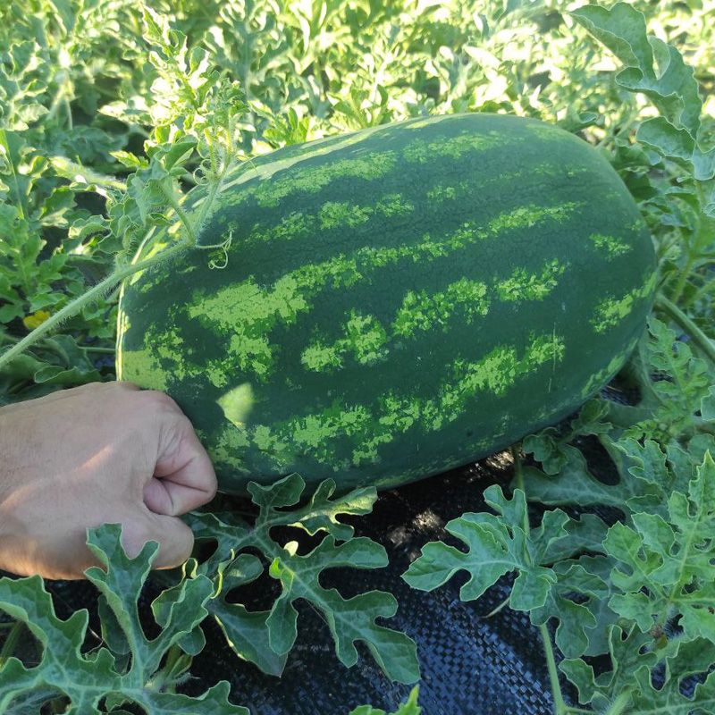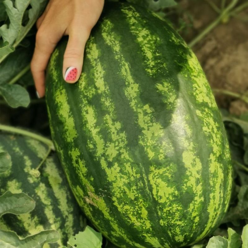 Характеристика плодов – Гибрид с овально-вытянутыми плодами. На 2 кустах по 5 полноценных плодов массой 10-12 кг. Есть экземпляры и по 18 кг! Плотный ярко-красный мякиш с хорошей внутренней структурой. Плоды отличаются повышенным содержанием сахаров (Brix 11) и замечательными вкусовыми свойствами.