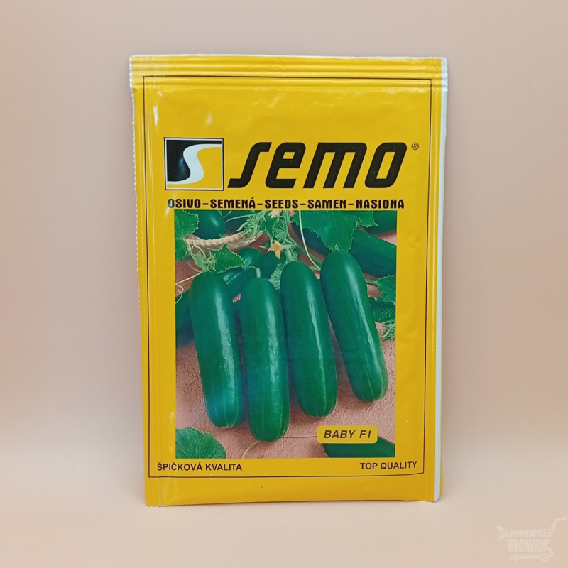 Бэйби F1 является среднеранним гибридом партенокарпического огурца Созревание завершается в период с 35-го по 40-й день. Плоды характеризуются средней длиной 8-16 сантиметров, сами гладкие и без горечи. Вкуснейший спелый гибрид имеет окрас от зелёного до тёмно-зелёного.
