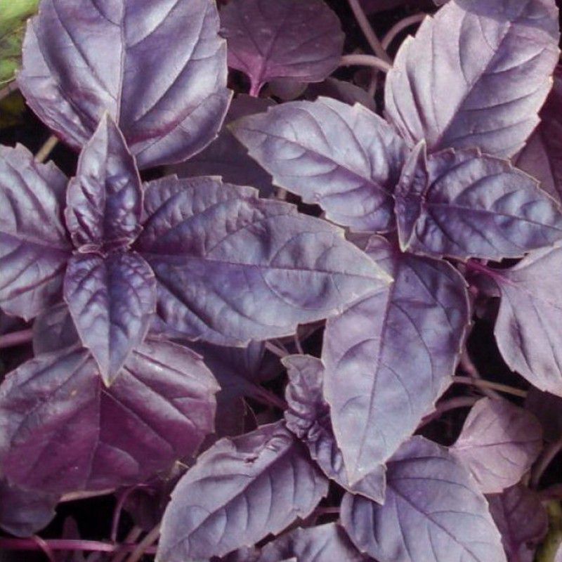 Обладает довольно широкими, невероятно душистыми листьями темно-фиолетового цвета, наполненными каротином и натуральными эфирными маслами.