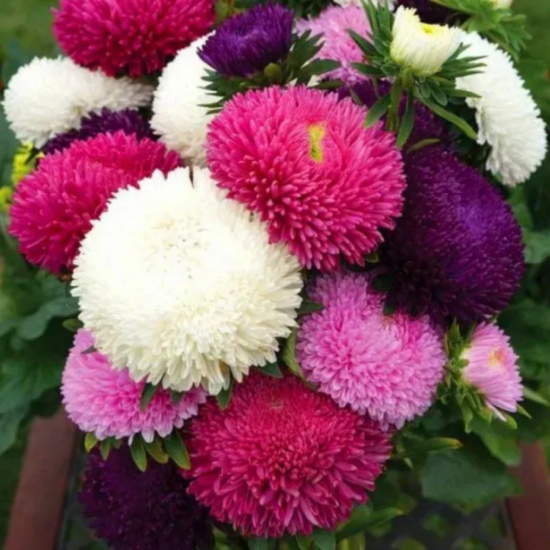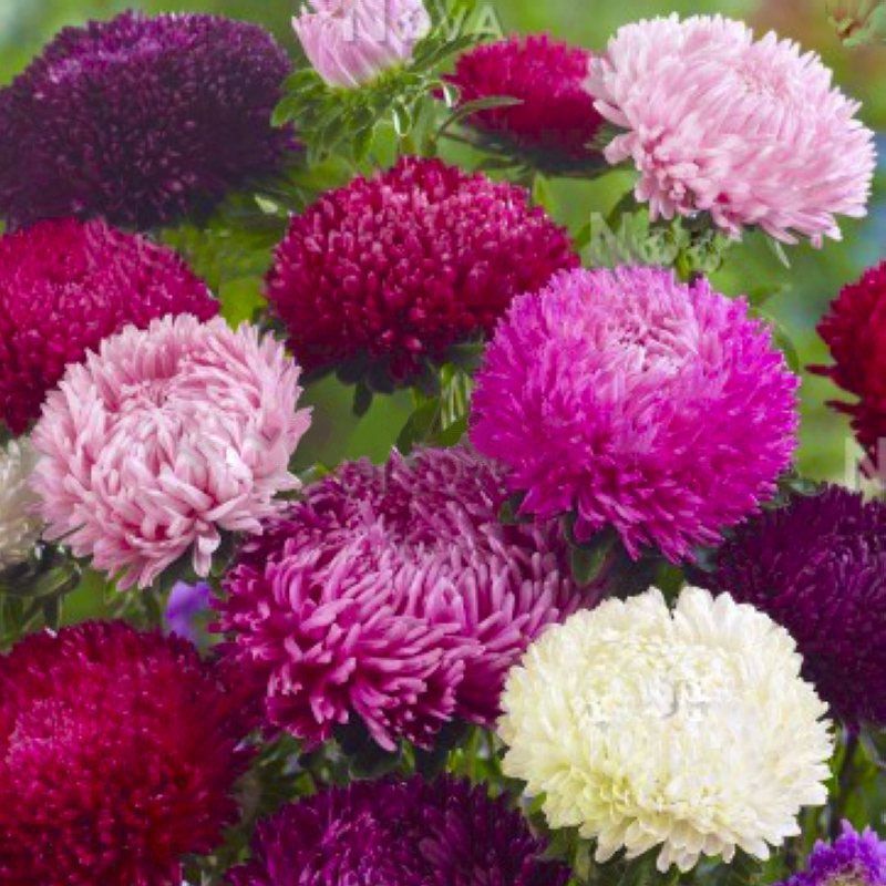 Callistephus chinensis Syringa Mix (Астра Серинга Смесь) - серия, которая очаровывает чрезвычайно большими, похожими на хризантему соцветиями, диаметром 12-15 см.