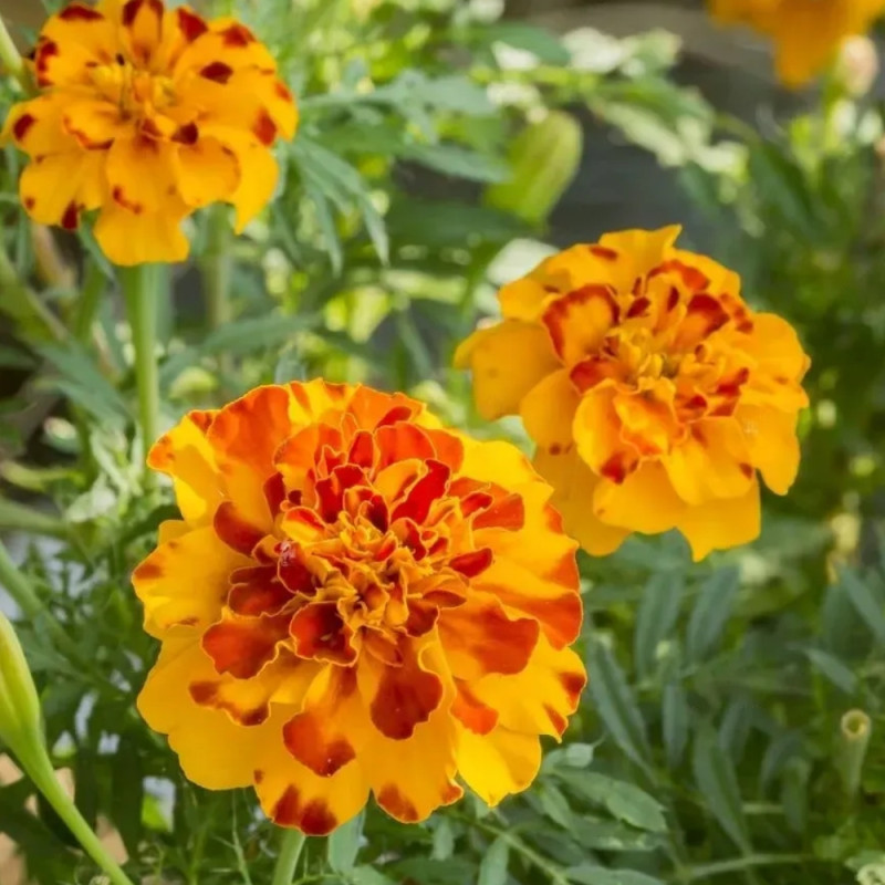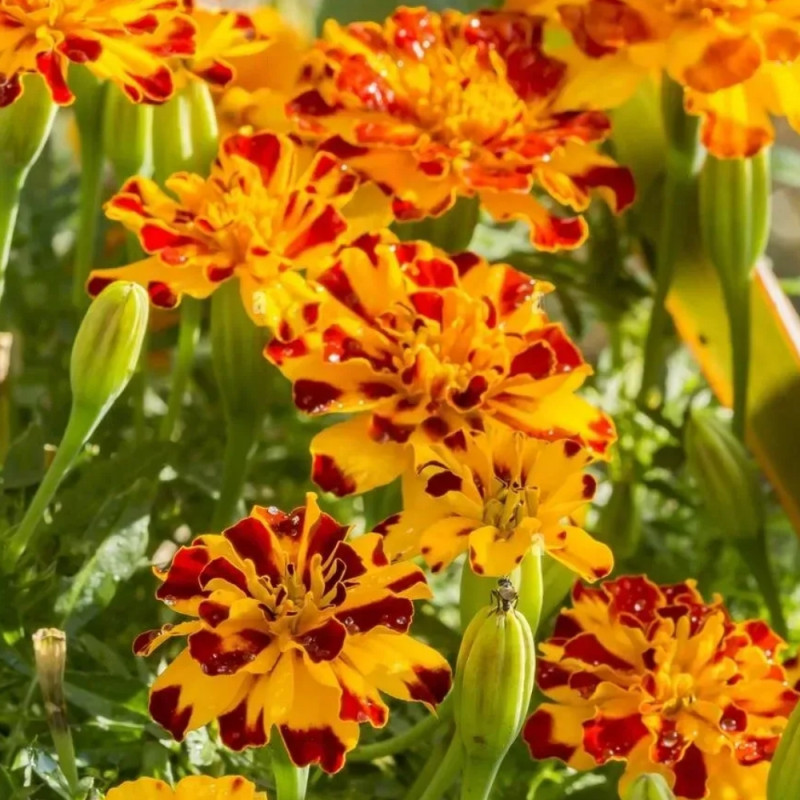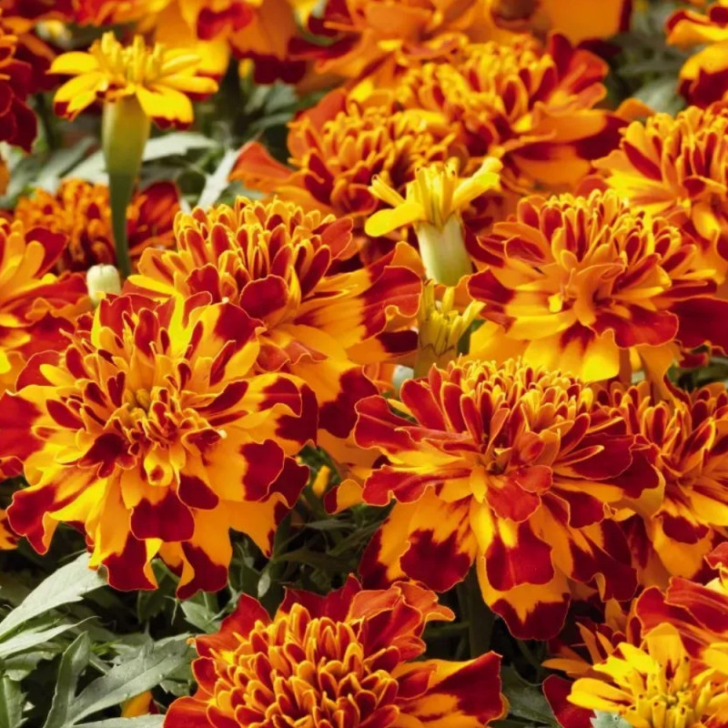 Бархатцы Сафари болеро красно-желтый раскидистый - яркая, компактная серия с крупными махровыми цветами оригинального окраса.