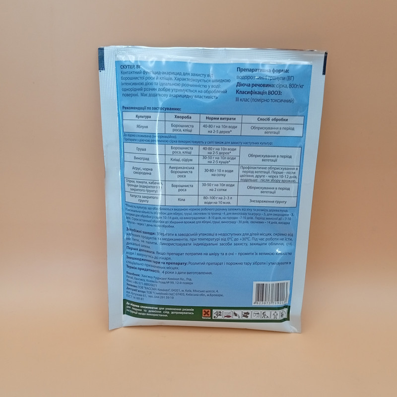 Яблоня, груша | Мучнистая роса, клещи | 40-80 г на 10 л воды на 2-5 деревьев* | Опрыскивание в период вегетации |