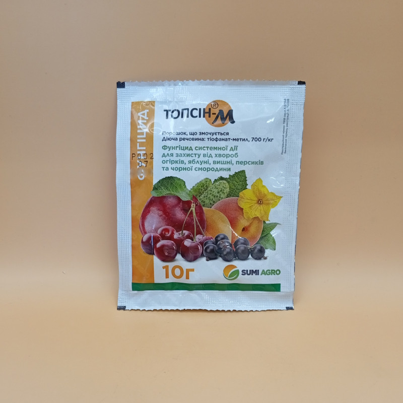 Топсин-М 70% - это системный фунгицид с контактным воздействием на патогены. Препарат применяется на плодовых, ягодных и овощных культурах.