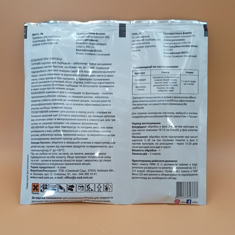 Рим + Мачо - это системный гербицид с послевсходовым внесением и содержанием в составе адъюванта.