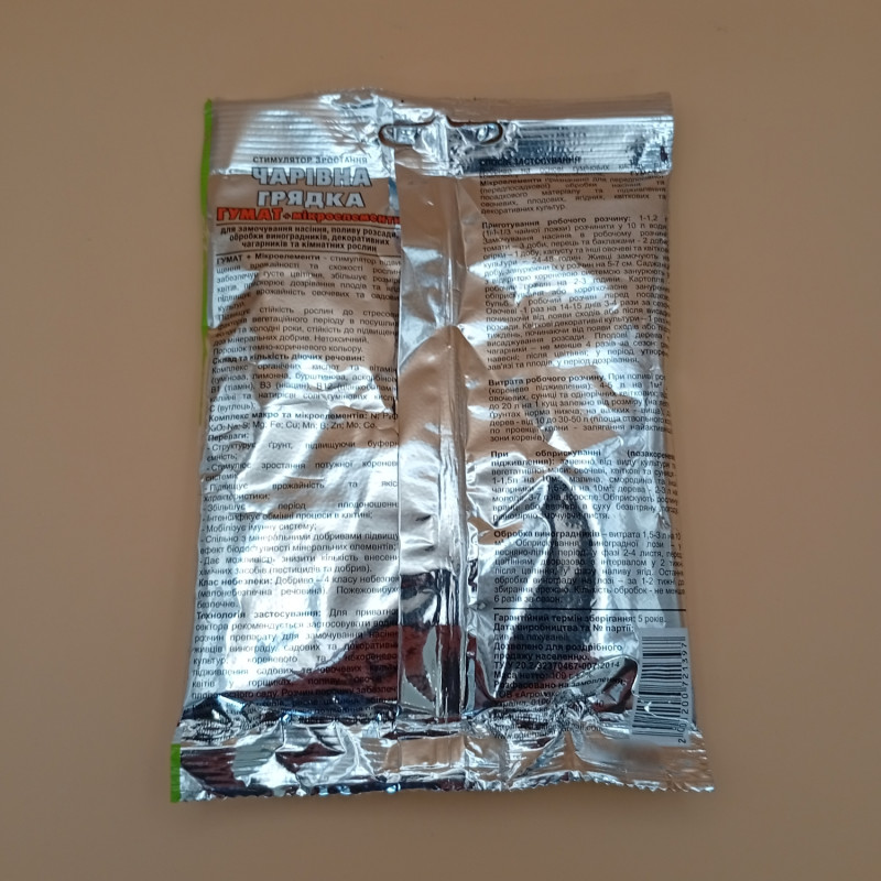 Гумат+микроэлементы - данное удобрение применяется для замачивания семян, полива рассады, внесение на насаждения винограда, декоративных и комнатных растений. Своим воздействием препарат в значительной мере повышает качество и количество конечной продукции. Также благодаря воздействию данного удобрения создается условия для скорейшего дозревания плодов и ягод. Повышается естественная устойчивость растений к стрессовым погодным условиям и заболеваниям. Не проявляет фитотоксического воздействия на культурные растения. В составе препарата имеется необходимый набор микро- и макроэлементов в доступной для растений форме, а также комплекс органических кислот и витаминов.