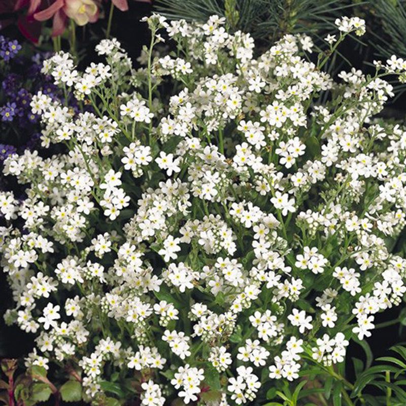 Куст компактный, шаровидный, высотой 15-20 см. Листочки очередные, овальной формы, заостренные. Прикорневая розетка из листьев на черешках, образуется уже в первый год. Белоснежные мелкие цветочки до 1 см, собраны в плотные обильно цветущие соцветия. Холодо- и морозостойкая культура.