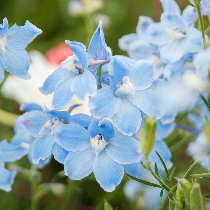Дельфиниум Саммер голубой - ранняя генетически компактная серия с большим количеством нежно-голубых цветов.