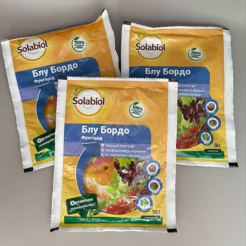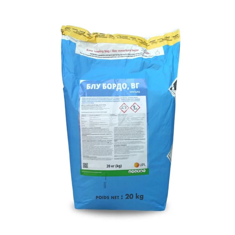 Блу Бордо - это контактный фунгицид, используется на яблонях и виноградниках, а также на других различных декоративных деревьев. Применяется при борьбе с такими вредными явлениями как милдью, парша и бактериологический ожог, гниль коры и пятнистость листьев.