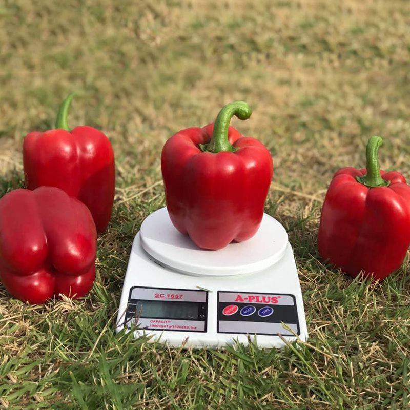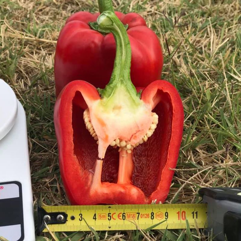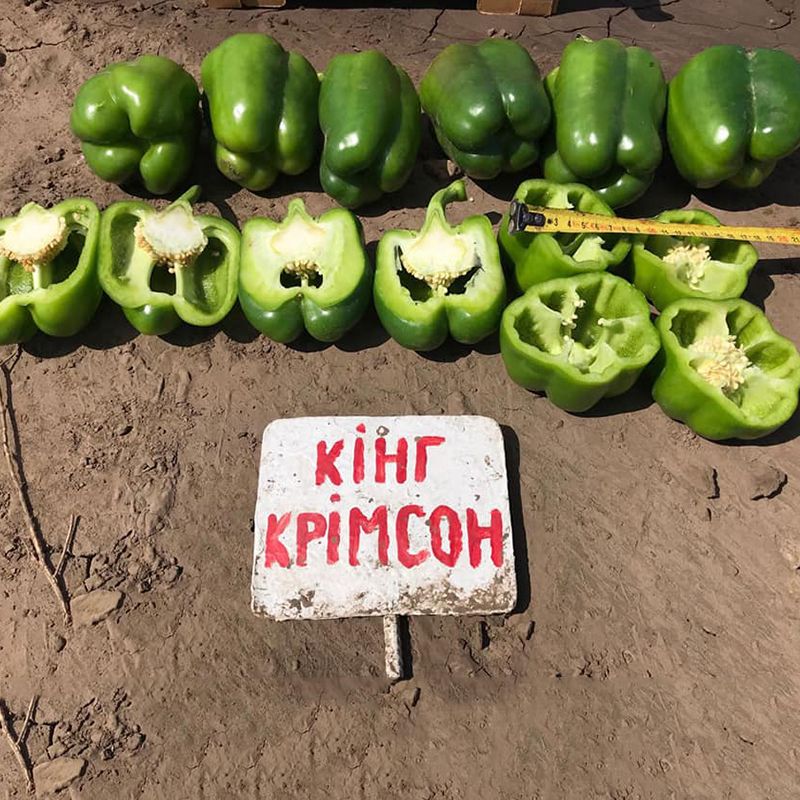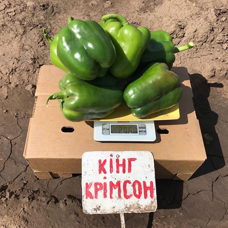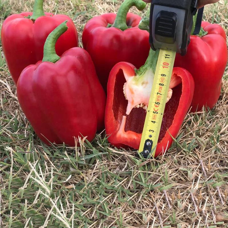 Характеристика плодов – Перцы кубовидной формы, с толстыми стенками и привлекательным блеском. Цвет плодов от темно-зеленого (техническая спелость) до насыщенно красного (биологическая спелость). Масса одного плода в среднем достигает до 350 г, длина 10-11 см, ширина 10 см.