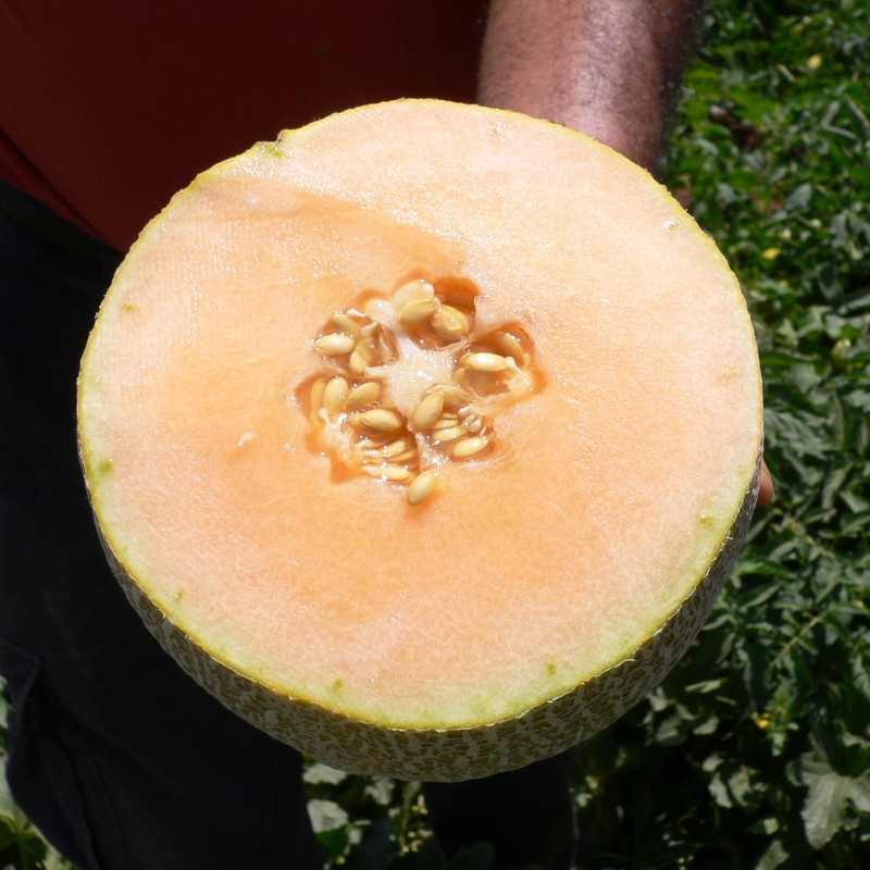 Плоды продолговато-овальной формы, обладают светло-оранжевой расцветки. Вес отдельной дыни - 2,5 - 4 кг. Пульпа плотная, оранжевого цвета.