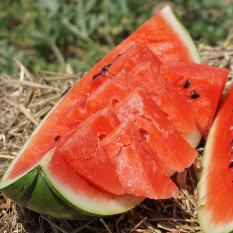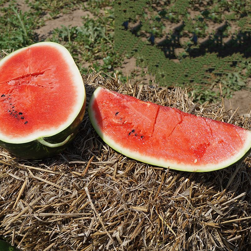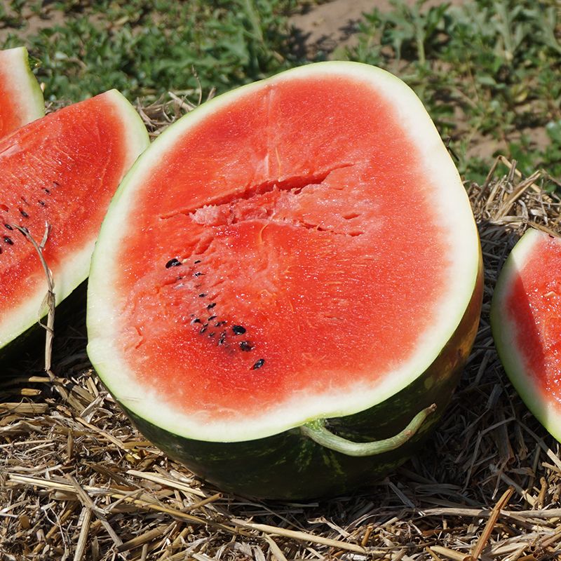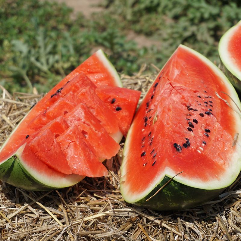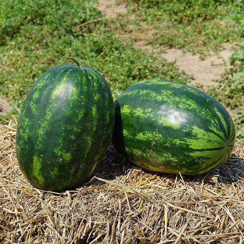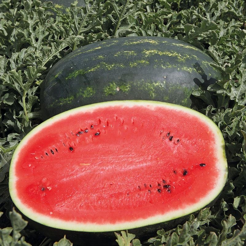 Характеристика плодов – Плоды овальной формы, средним весом 8-10 кг (но могут быть и больше в соответствующих условиях). Кожица по толщине средняя, но плотная, с ярко-зеленым фоном и более темными полосками. Мякоть сладкая, уникального рубинового цвета, плотного строения с высоким содержанием сахаров. Семена мелкие. Арбузы долгое время сохраняются на корне не перезревая.