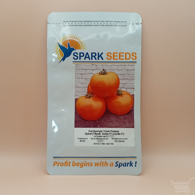 Солидо F1 является ранним гибридом детерминантного томата. Плод приобретает оранжевый цвет при созревании, средняя масса составляет 220 грамм. Обладает отменными вкусовыми качествами и хорошими товарными свойствами. Высаживает через рассаду. Подходит для потребления на свежем рынке.