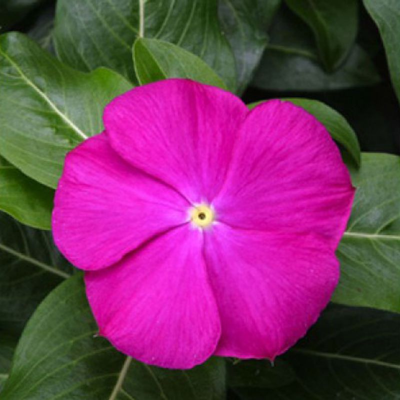 Цветы в катарантуса Sunstorm очень яркие и большие, листва темно-зеленая блестящая.