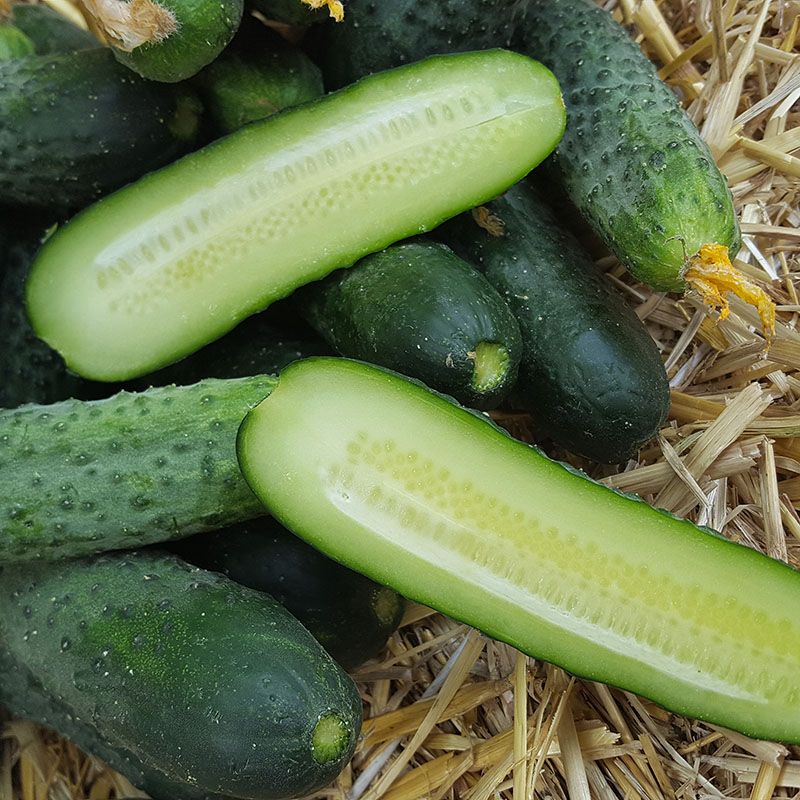 Характеристика плодов – Зеленцы темно-зеленого цвета, крупнобугорчатые, с белыми шипами, имеют форму цилиндра длиной 9-12 см, хорошо транспортируются.