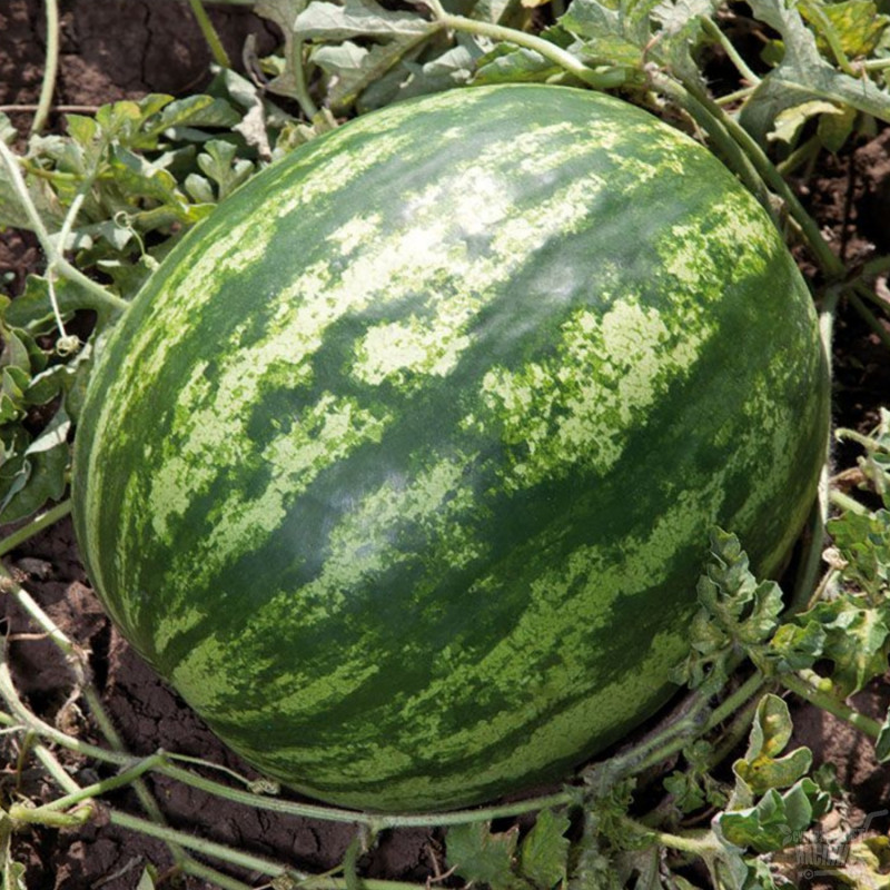 Выровненные плоды приобретают округлые формы и отмечаются темно-зелеными полосами на зеленом фоне. Они укрываются мощной вегетативной массой. Кроме того, что мякоть хрустящая, она еще плотная и очень сладкая. Имеет тонкую текстуру и ярко-красный окрас. У среднего плода вес: 9-11 килограмм. Характеризуется кожурой средней толщины и хорошей транспортабельностью.