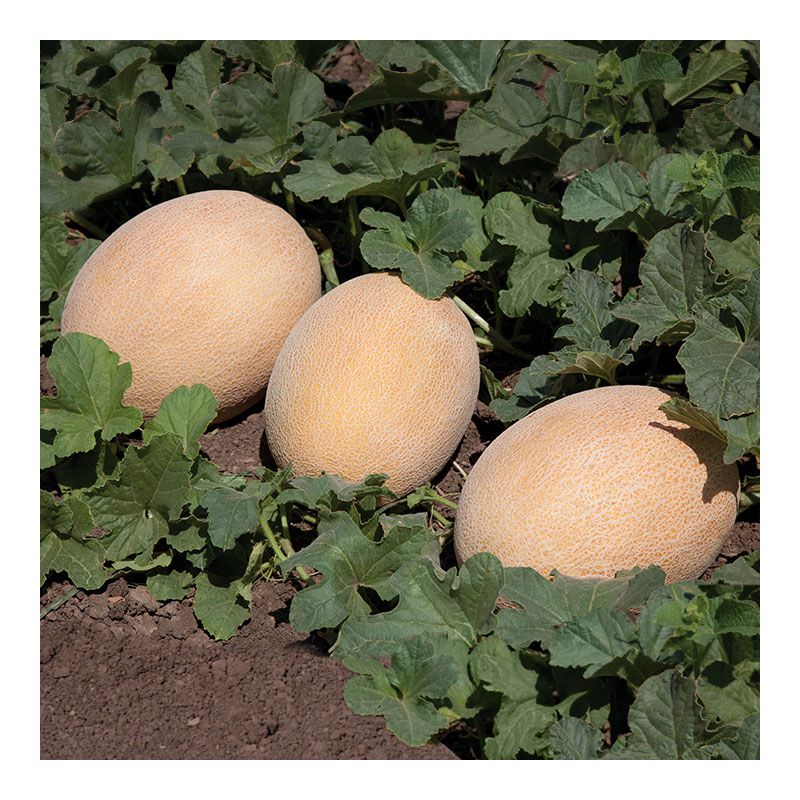 Плоды приобретают правильную овальную форму. Ярко выражена мелкая сетка. Средний вес насчитывает 2-2,5 килограмма. Сочная и ароматная мякоть имеет оранжевый окрас. Представлена маленькая семенная камера.