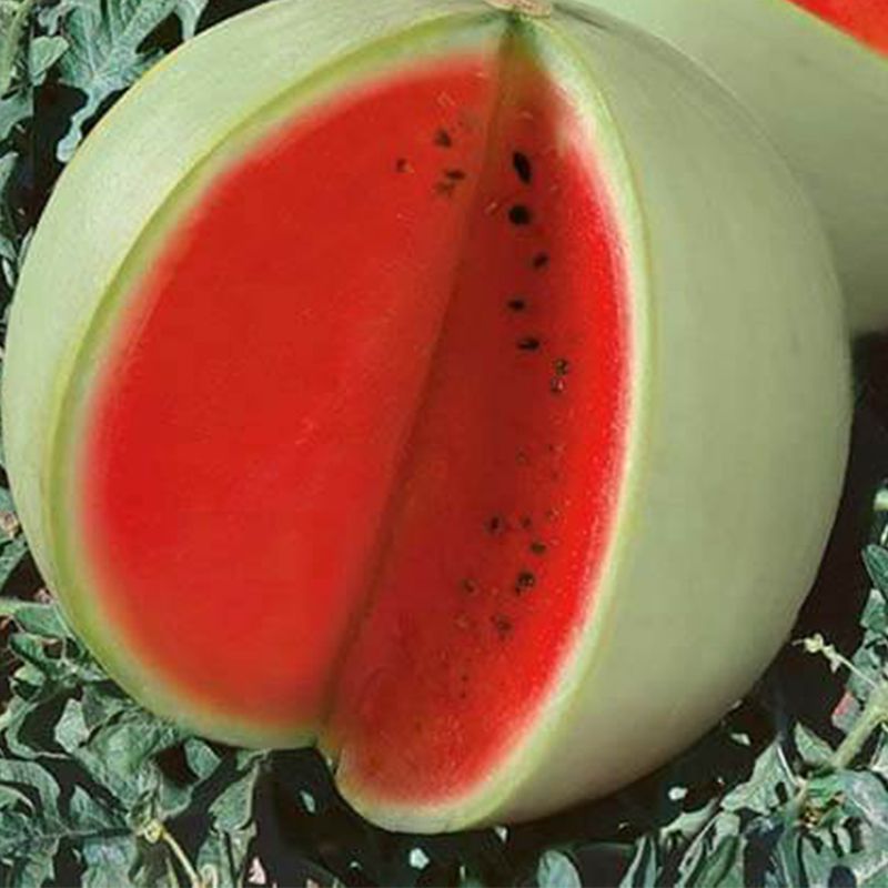 Формирует кругловатые арбузы белой расцветки, со слабо заметными полосами. Вес отдельного плода – 5-6 кг. Мякиш насыщенно-розового цвета, сахаристый и сочный, очень сладкий. Сорт характеризуется хорошим товарным качеством и приятным вкусом.
