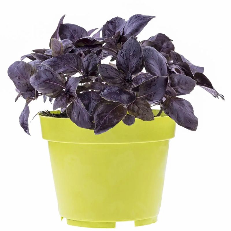Листья гладкие с редкими зубчиками по краям, приобретают темно-пурпурный окрас. Теплолюбивое растение отличается сильным пряным ароматом.