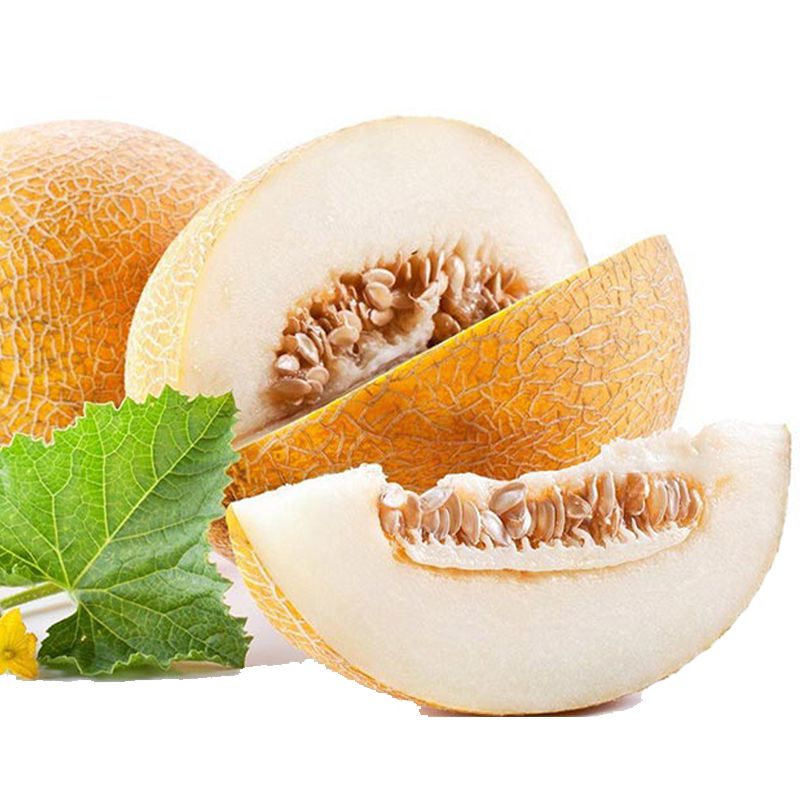 Плоды овальной формы, массой 2-3 кг. Поверхность имеет желтый окрас и текстуру сетки. Мякоть белого цвета, сочная, сладкая с очень приятным ароматом.