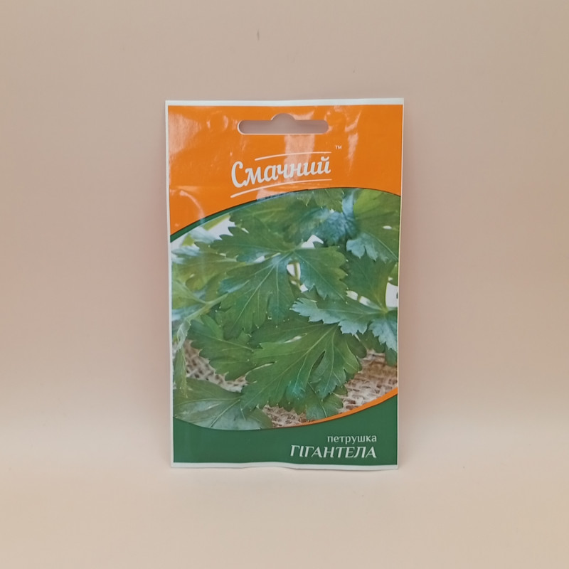 Гигантелла является скороспелым сортом петрушки. Вегетационный период занимает около 70 дней. На розетке можно насчитать до 100 листьев. Листовая пластинка достигает до 60 – 100 сантиметров в длину. Растение хорошо развивается в условиях закрытого и открытого грунта. Особенно ценится эта петрушка за обильную листовую массу. Сорт отличается и сильным ароматом. Чтобы получить хороший урожай такого сорта, нужно делать подзимний посев.