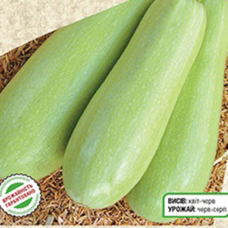 Формирует кабачки светло-зеленой расцветки, размер одного 17-20 см., масса 500-800 г. Бело-желтая мякоть, нежная и сочная на вкус. Высокое товарное качество и отличный вкус.