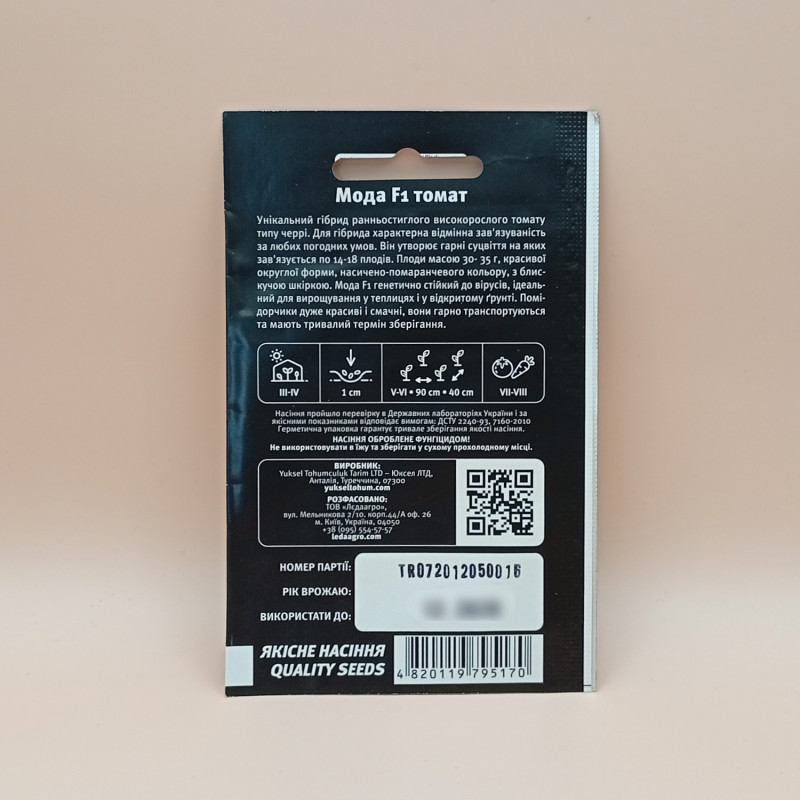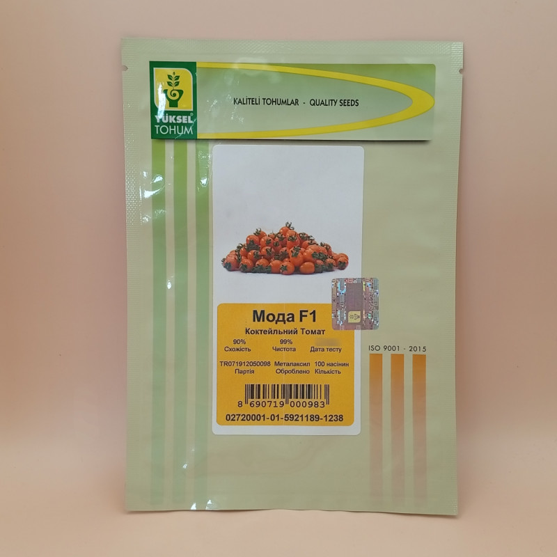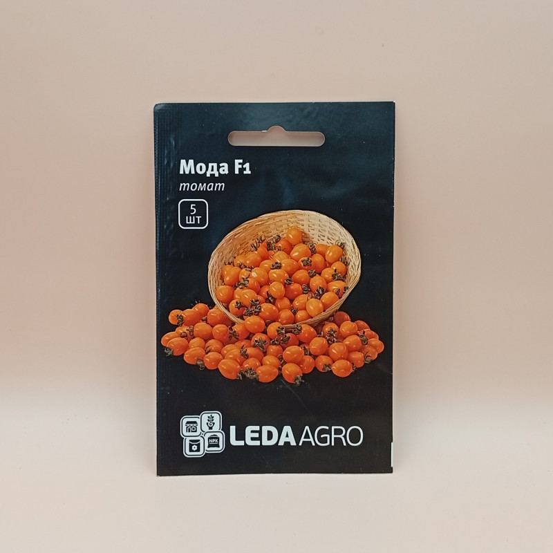 Мода F1 – гибрид томата черри коктейльного типа. Ранний период созревания. Мощные кусты с маленькими междоузлиями. На одной кисти формируется около 14-16 плодов. Томаты плотные, в форме овала, немного ребристые. Насыщенный оранжевый цвет. Масса одного плода: 30-35 г.