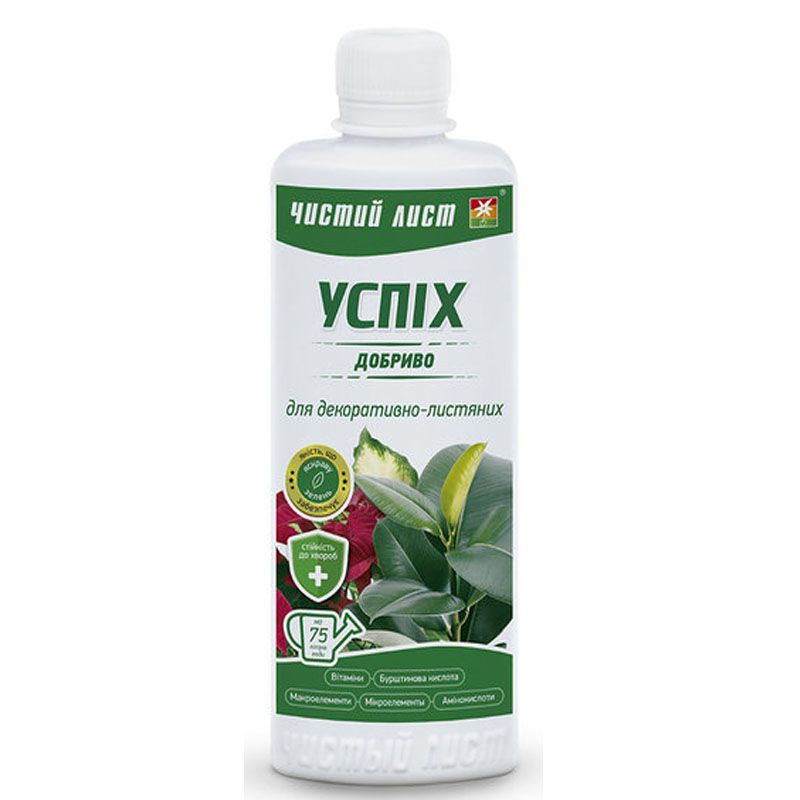 Чистый лист Для декоративно-лиственных - это жидкое минеральное удобрение. В составе содержит сбалансированный комплекс микро- и макроэлементов в хелатной форме. Своим воздействием улучшает развитие корневой системы и листовой поверхности. Также улучшает стойкость к заболеваниям и не допускает развиваться хлорозу.