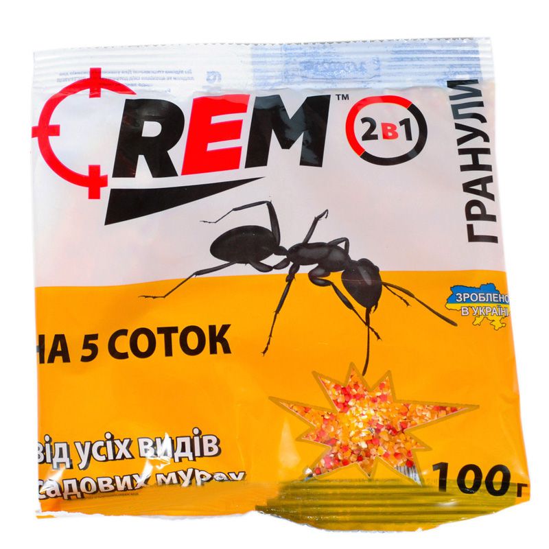 Рем (REM) средство от муравьев - средство для борьбы с садовыми муравьями на грядках и теплицах. Скорость воздействия препарата 2-4 дня. Длительность воздействия 2-3 месяца.