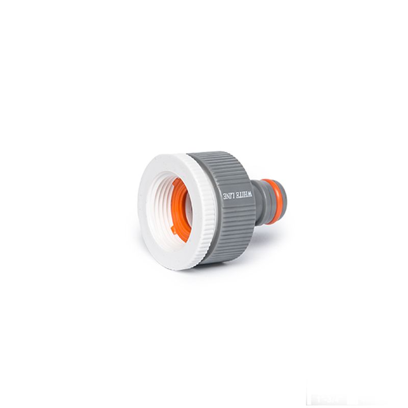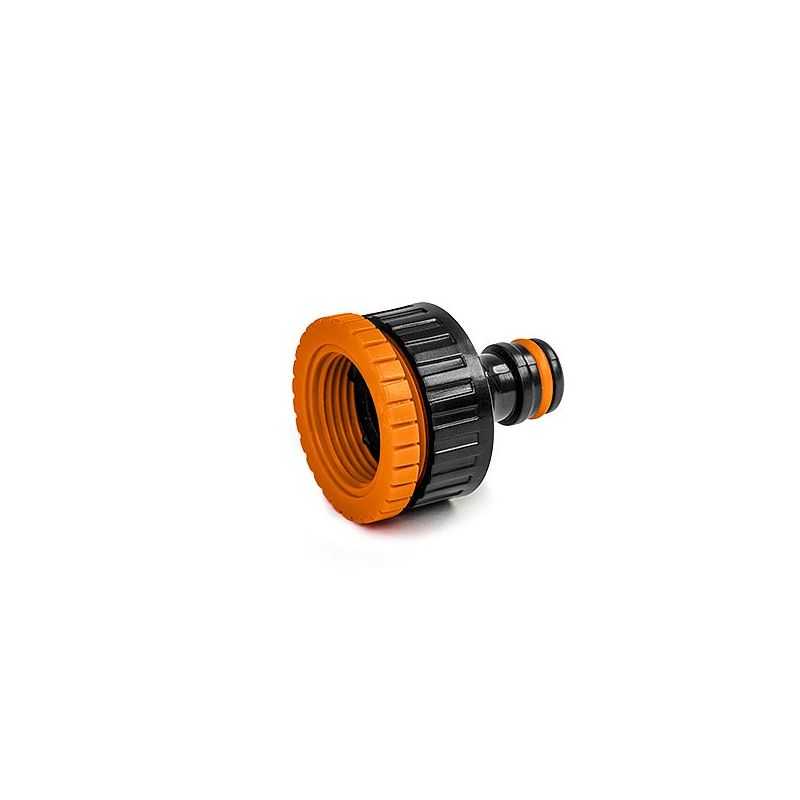 Адаптер оснащен внутренней резьбой для накручивания на кран 1 дюйм, редукционный переходник для крана 3/дюйм и ниппелем для соединения с коннектором.