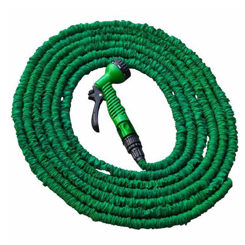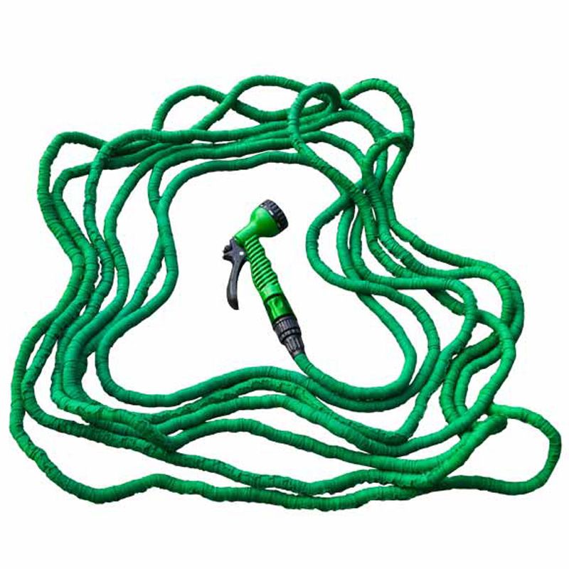 Растягивающийся шланг легкий и компактный. Увеличивается в 3 раза в длину, как только вы включаете воду, и возвращается к обычным размерам при ее отключении.