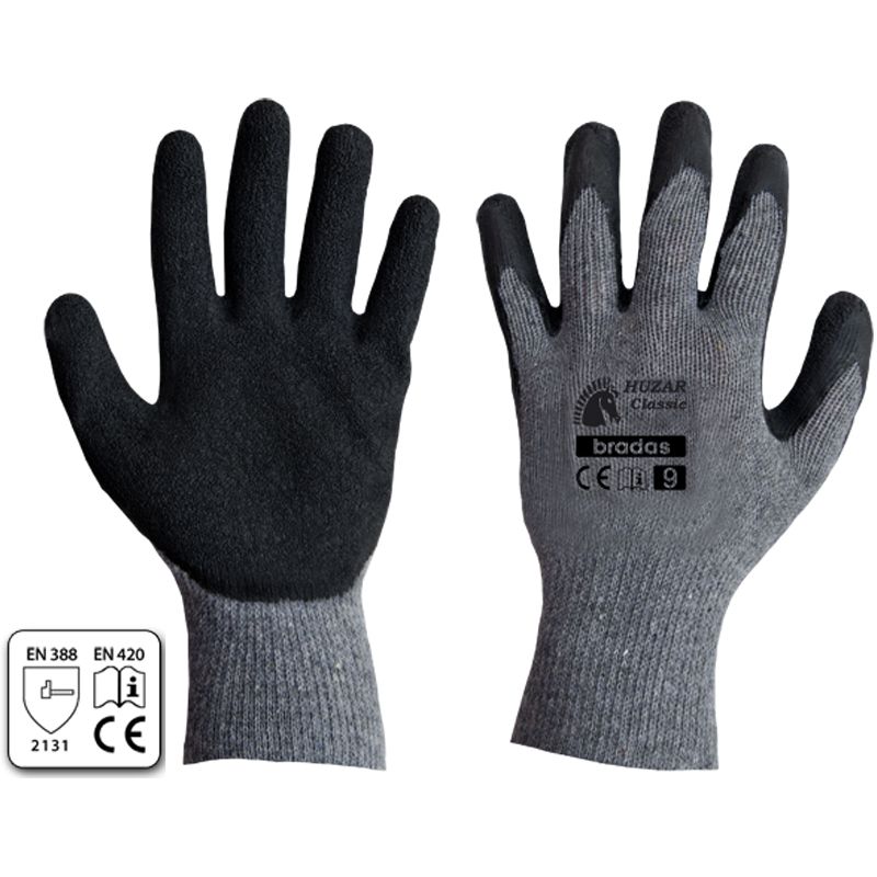 Перчатки защитные Huzar Classic латекс - выполнены из трикотажа. Отлично прилегают к руке. Латексное покрытие выполнено на ладонях и пальцах, благодаря чему создается отличная защита от порезов и проколов. Также благодаря данному покрытию обеспечивается отличное сцепление с поверхностями и предметами.