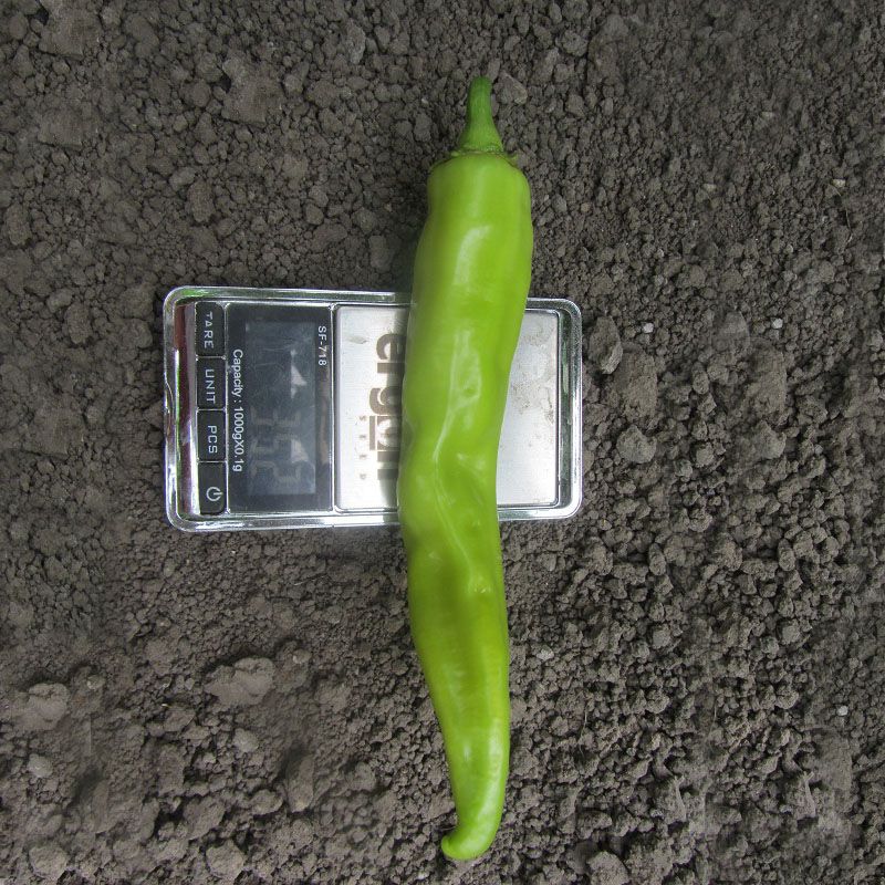 Характеристика плодов – Плоды продолговато-конусовидной формы, очень острые как в технической, так и в биологической спелости. Размер плода: 18х3 см. Цвет в технической спелости – салатовый, в биологической – красный.