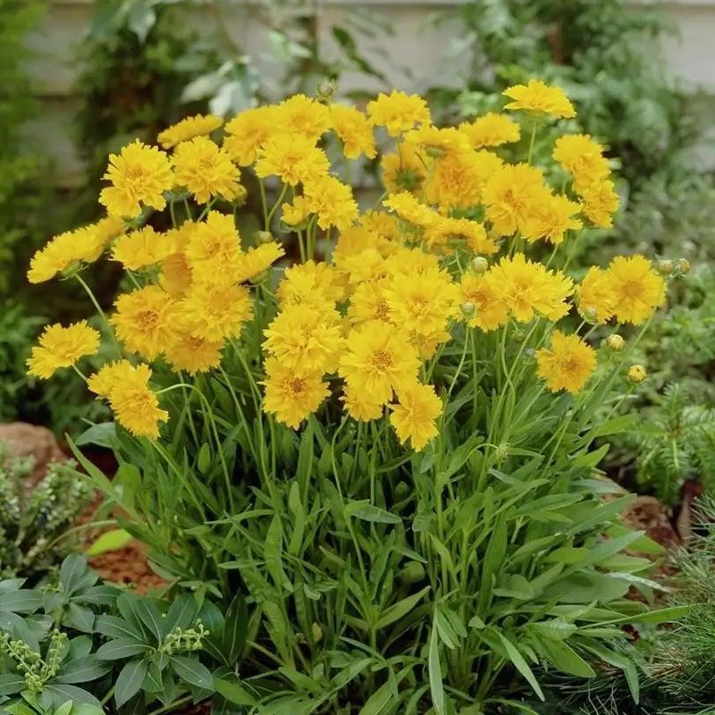 Кореопсис Санрайз – многолетний куст высотой от 30 до 60 см.