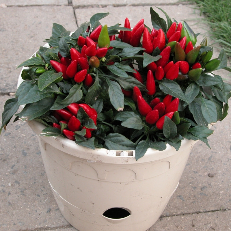 Плоды формируются короткие, конической формы и прямостоячие. Соотношение длина:ширина - 3,2:1,2 см. В технической зрелости плоды имеют зеленый окрас, а в биологической - красный. Очень острые.
