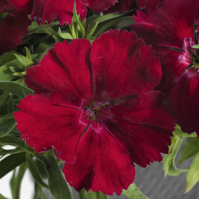 Диана F1 кримсон - гибрид китайской гвоздики. Растение имеет ранний период цветения. Достигает в высоту 15-20 см при выращивании в горшке и 20-25 см при выращивании в саду. В ширину достигает в среднем 15-20 см. Растение характеризуется тем, что неприхотливо, устойчиво к заморозкам и может выращиваться в легкой полутени, но любит все же открытые солнечные места.